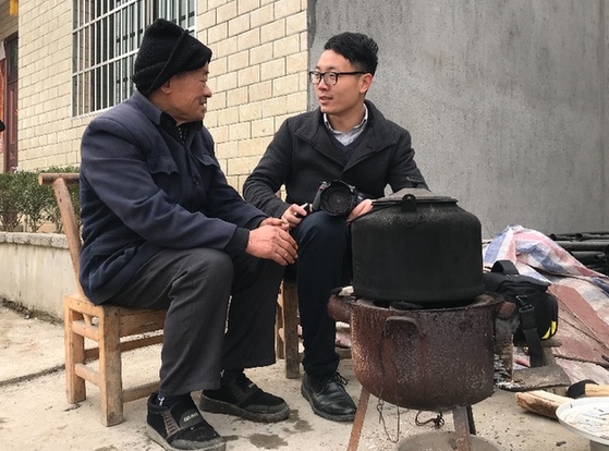 圖為2017年農(nóng)歷臘月27,梁建強(qiáng)(右)在湖北崇陽走訪貧困戶。