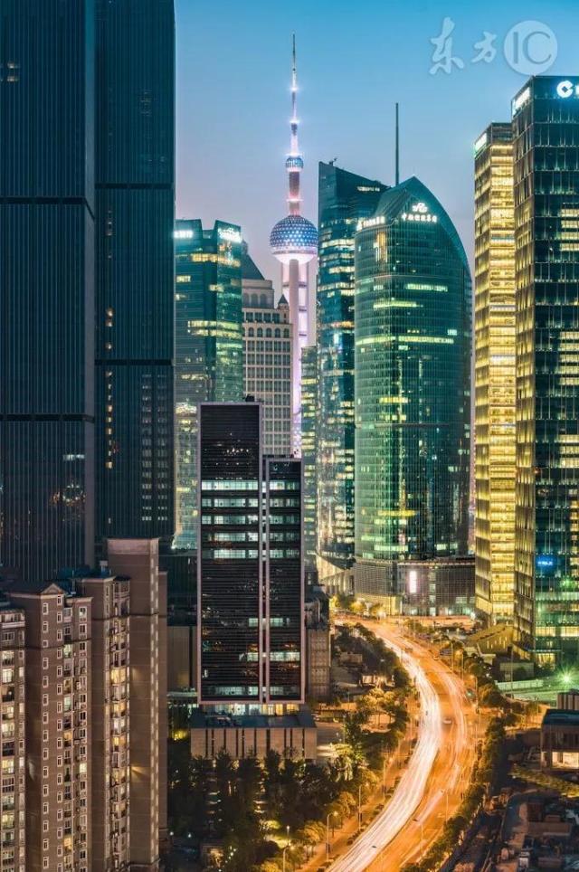 燈光璀璨,車燈組成的車流駛向東方明珠。