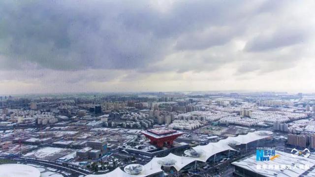 ↑雪后的中華藝術(shù)宮和世博園有著別樣的美。新華網(wǎng) 吳愷 攝