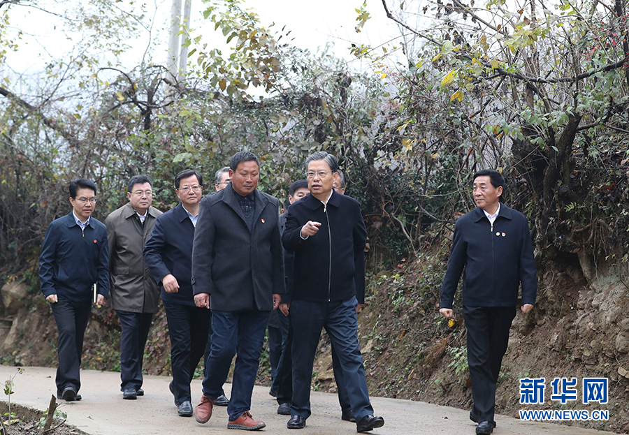 11月6日至9日,中共中央政治局常委、中央紀(jì)委書記趙樂際到河南省調(diào)研。這是11月7日,趙樂際在南陽市桐柏縣吳灣村實地走訪調(diào)研。 新華社記者丁林?jǐn)z