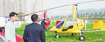 工作人員向觀眾介紹一款可搭載測繪儀器的自動旋翼機(jī)。新華社發(fā)