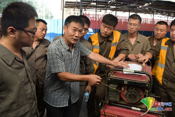 張立昌演示新型軌廓道尺與普通道尺使用區(qū)別。中國(guó)青年網(wǎng)記者 李川 攝