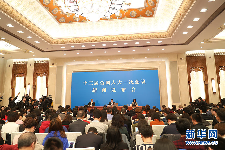 3月4日,十三屆全國人大一次會(huì)議在人民大會(huì)堂新聞發(fā)布廳舉行新聞發(fā)布會(huì),由大會(huì)發(fā)言人張業(yè)遂就大會(huì)議程和人大工作相關(guān)的問題回答中外記者的提問。圖為新聞發(fā)布會(huì)現(xiàn)場(chǎng)。新華網(wǎng)/中國政府網(wǎng) 陳杰 攝