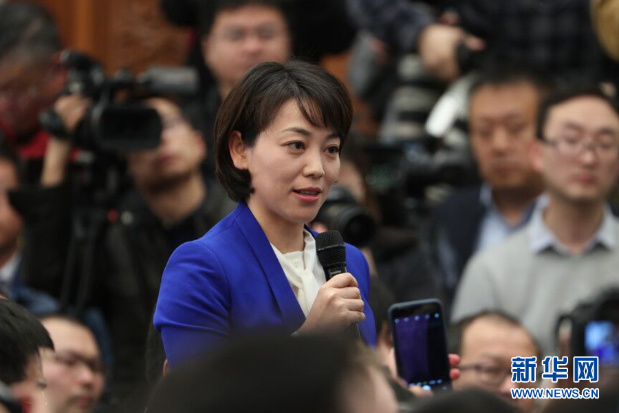 3月4日,十三屆全國人大一次會議在人民大會堂新聞發(fā)布廳舉行新聞發(fā)布會,由大會發(fā)言人張業(yè)遂就大會議程和人大工作相關(guān)的問題回答中外記者的提問。圖為中央電視臺記者提問。新華網(wǎng)/中國政府網(wǎng) 陳杰 攝