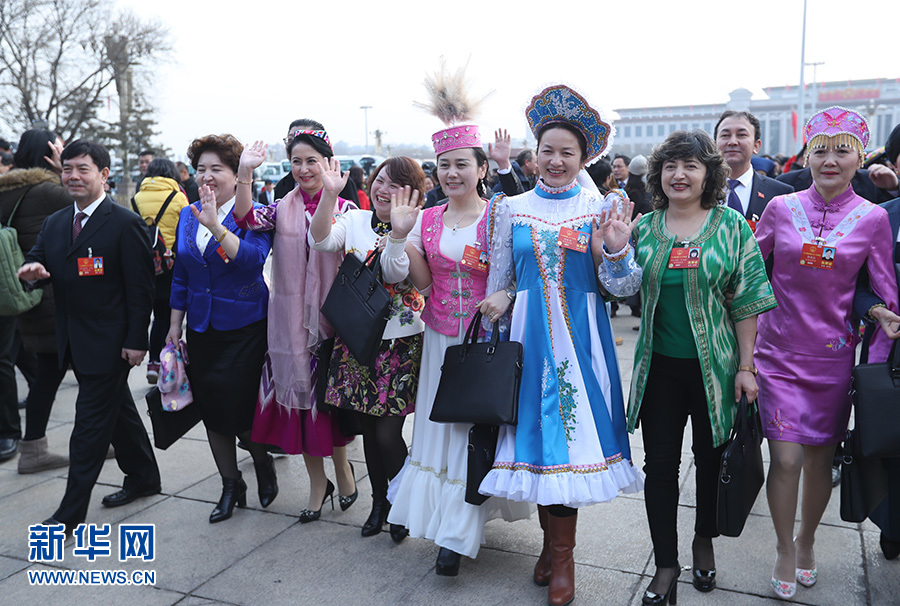 3月5日,第十三屆全國人民代表大會第一次會議在北京人民大會堂開幕,這是代表們走向會場。 新華網(wǎng)/中國政府網(wǎng) 翟子赫 攝