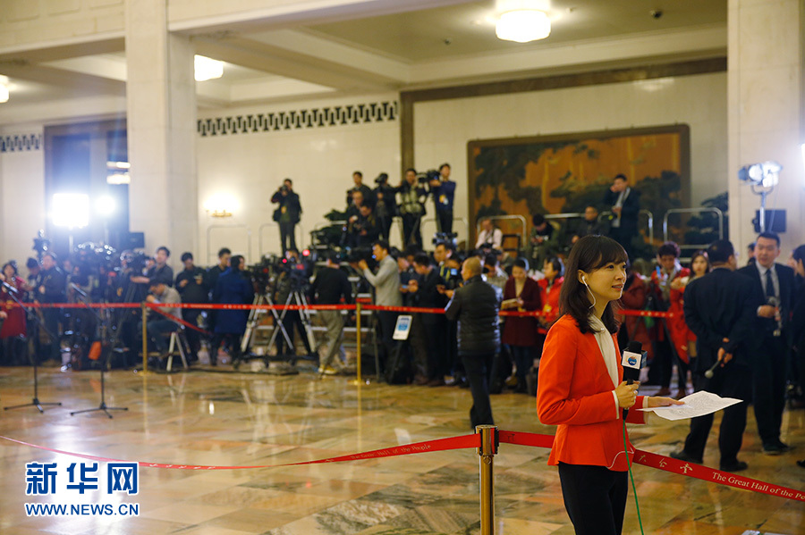 ??? 3月5日,第十三屆全國人民代表大會第一次會議在北京人民大會堂開幕。這是記者在“代表通道”采訪。 新華網(wǎng)/中國政府網(wǎng) 陳杰 攝