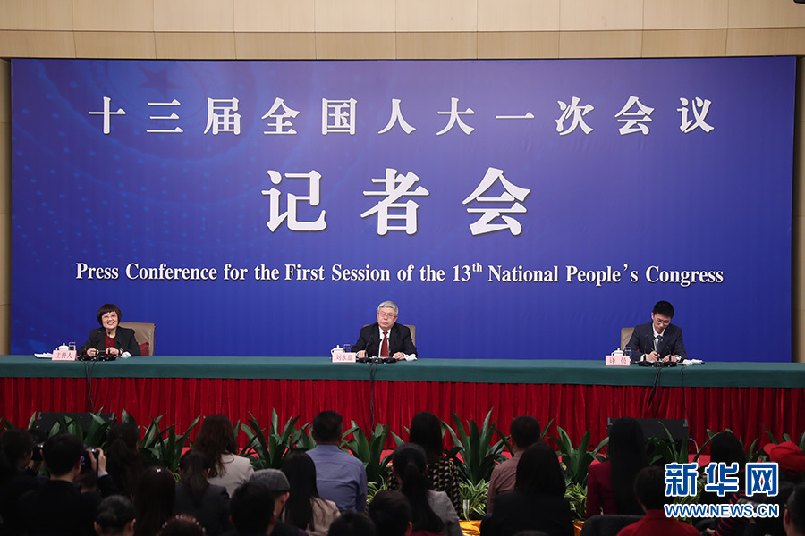 十三屆全國人大一次會議新聞中心于3月7日在梅地亞中心多功能廳舉行記者會,邀請國務(wù)院扶貧辦主任劉永富就“打好精準(zhǔn)脫貧攻堅戰(zhàn)”的相關(guān)問題回答中外記者的提問。圖為記者會現(xiàn)場。新華網(wǎng)/中國政府網(wǎng) 陳杰 攝