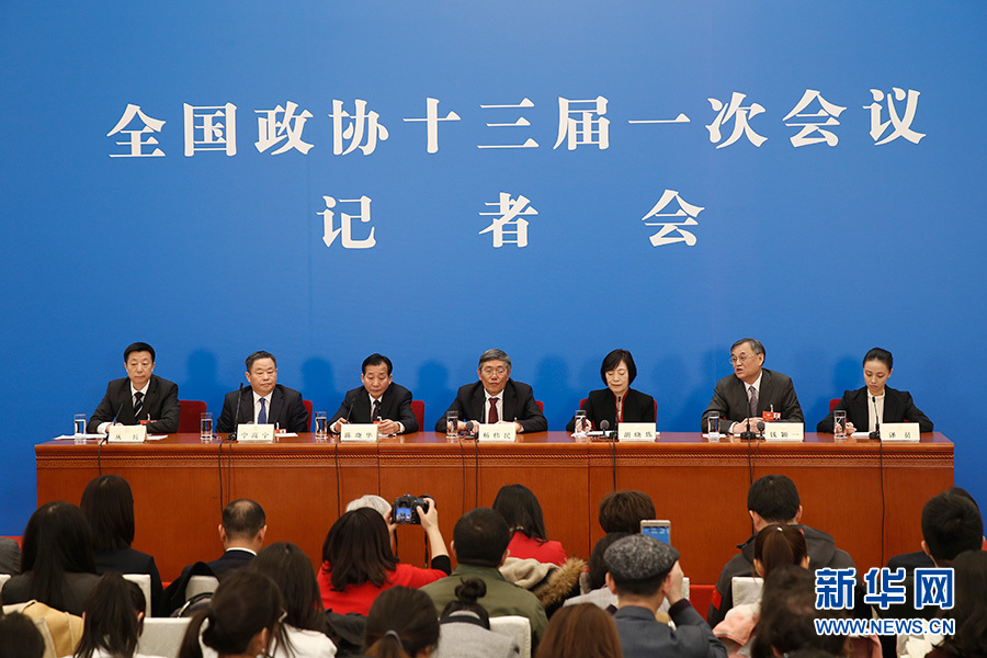 全國政協(xié)十三屆一次會議3月8日15:00在人民大會堂新聞發(fā)布廳舉行第二場記者會,邀請中央財經(jīng)領(lǐng)導(dǎo)小組辦公室副主任楊偉民,中國進(jìn)出口銀行董事長、黨委書記胡曉煉,農(nóng)業(yè)部原副部長陳曉華,全國工商聯(lián)副主席、清華大學(xué)經(jīng)濟管理學(xué)院院長錢穎一,中國中化集團有限公司黨組書記、董事長寧高寧就推動經(jīng)濟高質(zhì)量發(fā)展回答記者提問。圖為記者會現(xiàn)場。新華網(wǎng)/中國政府網(wǎng) 翟子赫 攝?