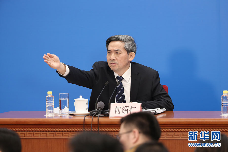 3月11日,十三屆全國人大一次會(huì)議新聞中心在人民大會(huì)堂一樓新聞發(fā)布廳舉行記者會(huì),邀請(qǐng)十三屆全國人大一次會(huì)議秘書處法案組組長、全國人大常委會(huì)法工委主任沈春耀,法案組副組長、全國人大常委會(huì)法工委副主任鄭淑娜就“憲法修正案”相關(guān)問題回答中外記者提問。圖為記者會(huì)主持人何紹仁。新華網(wǎng)/中國政府網(wǎng) 翟子赫 攝