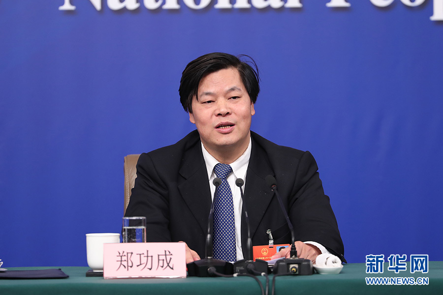 十三屆全國人大一次會(huì)議新聞中心于3月12日15時(shí)在梅地亞中心多功能廳舉行記者會(huì),邀請(qǐng)十二屆全國人大財(cái)經(jīng)委副主任委員尹中卿、教科文衛(wèi)委副主任委員吳恒、環(huán)資委副主任委員袁駟、內(nèi)司委委員鄭功成,全國人大常委會(huì)預(yù)算工委副主任劉修文、常委會(huì)辦公廳秘書局巡視員傅文杰就“人大監(jiān)督工作”相關(guān)問題回答中外記者提問。圖為內(nèi)司委委員鄭功成回答記者提問。新華網(wǎng)/中國政府網(wǎng) 陳杰攝