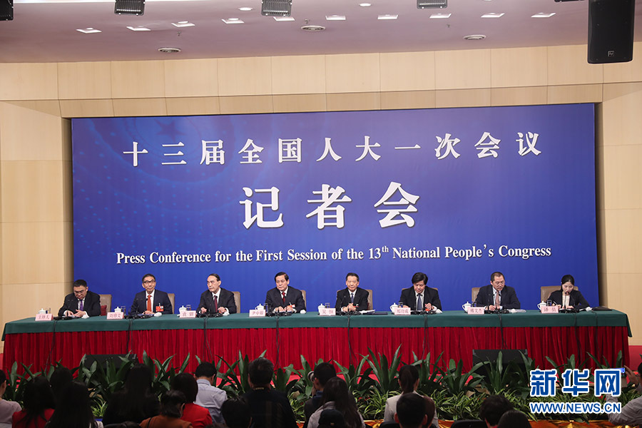 十三屆全國(guó)人大一次會(huì)議新聞中心于3月12日15時(shí)在梅地亞中心多功能廳舉行記者會(huì),邀請(qǐng)十二屆全國(guó)人大財(cái)經(jīng)委副主任委員尹中卿、教科文衛(wèi)委副主任委員吳恒、環(huán)資委副主任委員袁駟、內(nèi)司委委員鄭功成,全國(guó)人大常委會(huì)預(yù)算工委副主任劉修文、常委會(huì)辦公廳秘書局巡視員傅文杰就“人大監(jiān)督工作”相關(guān)問(wèn)題回答中外記者提問(wèn)。圖為記者會(huì)現(xiàn)場(chǎng)。新華網(wǎng)/中國(guó)政府網(wǎng) 陳杰?攝