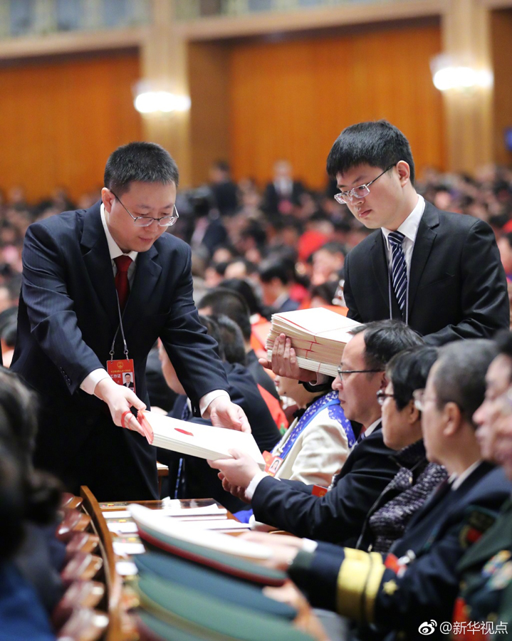 新華網(wǎng)北京3月17日電 3月17日,十三屆全國(guó)人大一次會(huì)議在北京人民大會(huì)堂舉行第五次全體會(huì)議,選舉新一屆國(guó)家領(lǐng)導(dǎo)人。這是工作人員發(fā)放選票。(據(jù)新華社“新華視點(diǎn)”微博報(bào)道 攝影:劉衛(wèi)兵) ?????