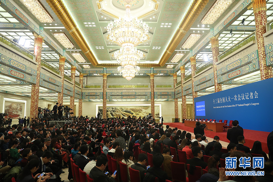 3月20日上午,十三屆全國人大一次會議閉幕后,國務(wù)院總理李克強將在人民大會堂三樓金色大廳會見采訪十三屆全國人大一次會議的中外記者并回答記者提出的問題。圖為記者會現(xiàn)場。 新華網(wǎng)/中國政府網(wǎng) 翟子赫 攝