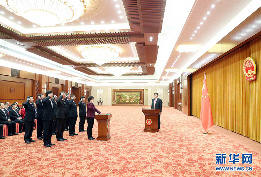 剛剛閉幕的十三屆全國人大常委會第一次會議任命了全國人大常委會副秘書長、預(yù)算工作委員會主任、第四任香港特別行政區(qū)基本法委員會主任和第四任澳門特別行政區(qū)基本法委員會主任。根據(jù)全國人大常委會關(guān)于實行憲法宣誓制度的決定,上述人員依法進行憲法宣誓。