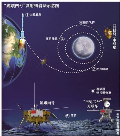 嫦娥四號去年12月8日搭乘火箭發(fā)射,12月12日進入環(huán)月軌道,12月30日進入月球背面著陸準備軌道。12月12日后,嫦娥四號進行了2次環(huán)月軌道修正,與“鵲橋號”中繼星進行了4次中繼鏈路測試,開展激光測距、三維成像等導航敏感器在軌測試。