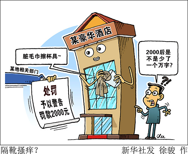 2018年11月,國內十幾家高端酒店連續(xù)曝出衛(wèi)生亂象。近日上海相關部門對涉事酒店分別處以警告、罰款2000元的處罰,引發(fā)網友熱議:被罰金額甚至抵不上有的酒店單間一晚房價。業(yè)界呼吁,“亮劍”酒店亂象還需“劍更鋒利”。