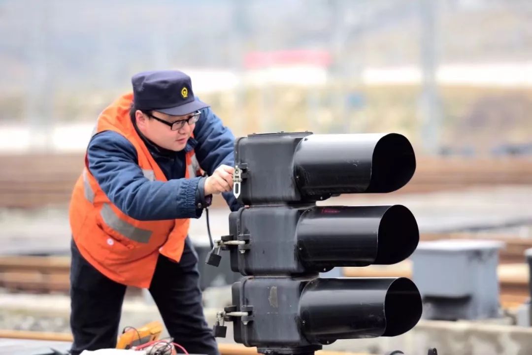 2019-01-22,貴州省貴陽市貴陽北動車所。鐵路信號工是擦亮高鐵的眼睛的人,為了高鐵運行安全,他們默默地付出著。作者:藍色貝雷