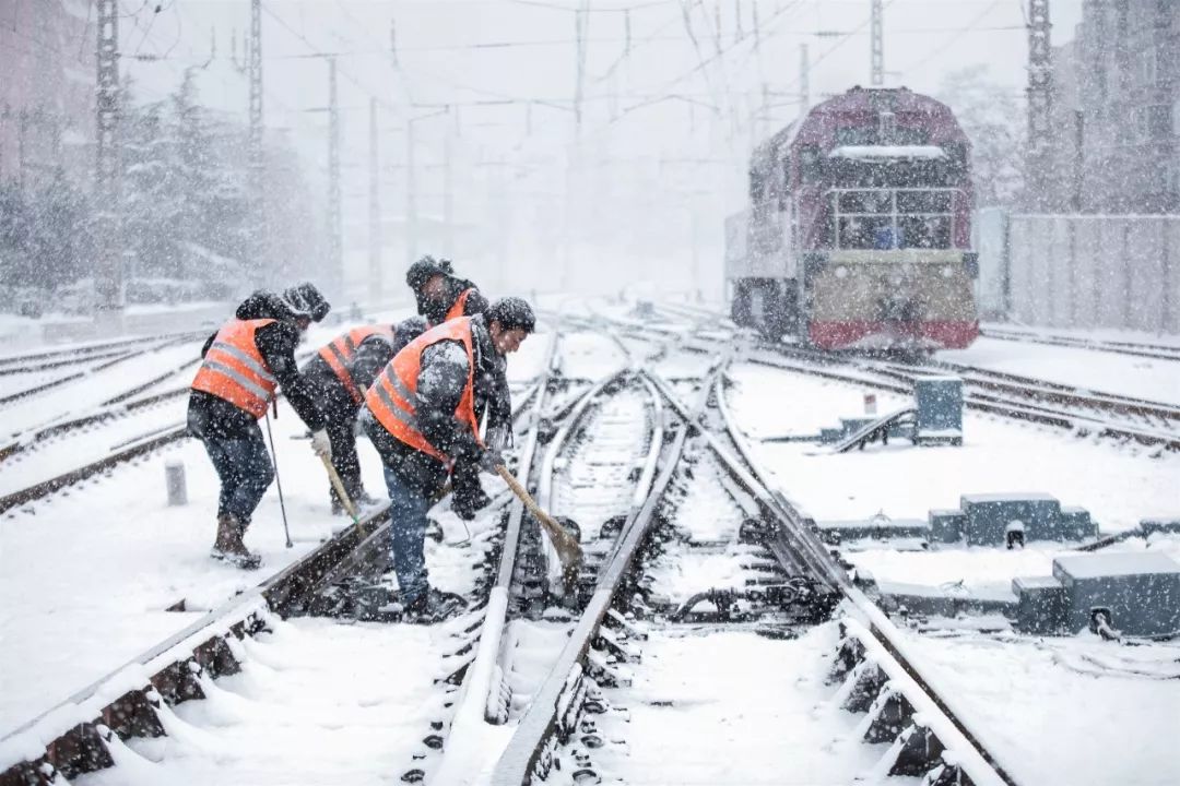 2019-02-02,遼寧省大連市。鐵路人清掃道岔,保障春運期間旅客乘坐的列車安全、正點。作者:曹哲爽