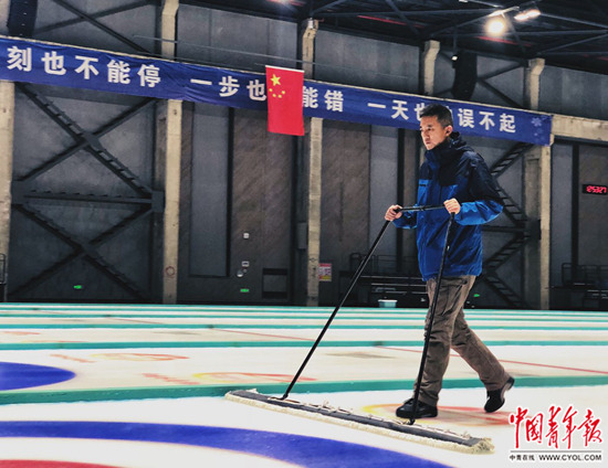 因冰壺比賽對(duì)冰面要求極高,能完成冰壺場(chǎng)地掃冰、制冰的劉博強(qiáng)任務(wù)繁重,在運(yùn)動(dòng)隊(duì)訓(xùn)練密集時(shí),他常在冰場(chǎng)一待就是一天。但他“要求”自己得像打了雞血一般,“我粗略打聽了一下,能把冰壺冰面做好的制冰師,全國(guó)不超過兩位數(shù),所以,我盼著參與冬奧賽時(shí)的冰面維護(hù),要能實(shí)現(xiàn),我人生至高點(diǎn)也就在那兒了吧。”