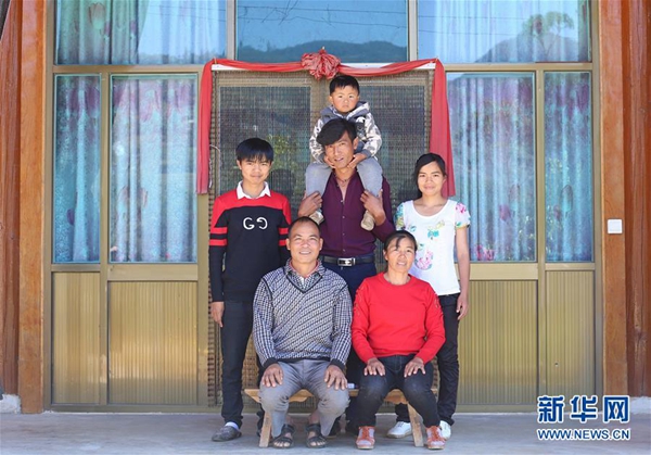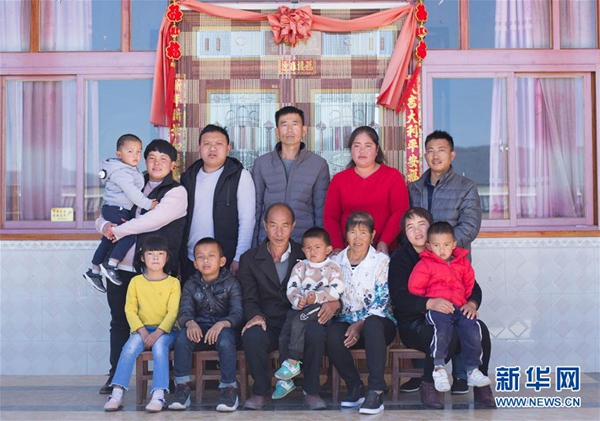 云南省施甸縣由旺鎮(zhèn)楊家社區(qū)村民蔣朋玉(前排左)一家的“全家?!保?月8日攝)。新華社發(fā)(楊董清 攝)
