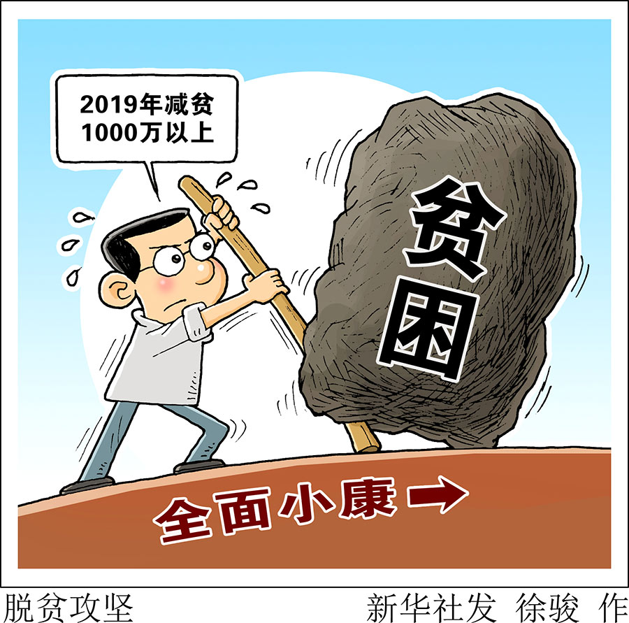 新華社北京3月5日電(記者侯雪靜、張紫赟)5日提交十三屆全國人大二次會議審議的政府工作報(bào)告提出,2019年農(nóng)村貧困人口減少1000萬以上。