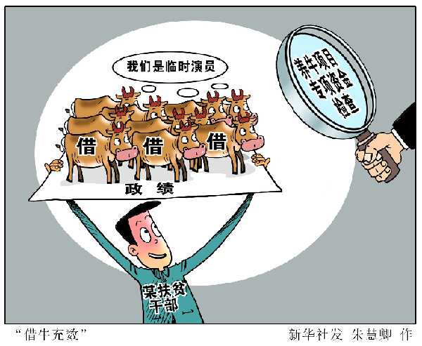 為應(yīng)對國務(wù)院扶貧辦養(yǎng)牛項(xiàng)目專項(xiàng)資金檢查,居然想出臨時借用百余頭牛放入牛圈,以營造養(yǎng)牛項(xiàng)目“紅火”的主意。吉林省紀(jì)委近日通報一起借牛假冒政績的典型問題,相關(guān)責(zé)任人受到嚴(yán)肅查處問責(zé)?!敖枧3鋽?shù)”事件敲響警鐘:脫貧攻堅(jiān)越到最后時刻越要響鼓重錘,決不能搞急功近利、虛假政績的東西。