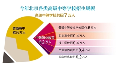 昨天,北京市教委發(fā)布《北京市教育委員會(huì)關(guān)于做好2019年高級(jí)中等學(xué)??荚囌猩ぷ鞯囊庖姟罚ㄒ韵潞?jiǎn)稱“意見”)。北京青年報(bào)記者注意到,根據(jù)意見,今年本市各類高級(jí)中等學(xué)校招生規(guī)模為7萬(wàn)人,其中普通高中招5萬(wàn)人,中等職業(yè)教育招2萬(wàn)人。同時(shí),確定中考文化課考試時(shí)間為2019年6月24日至26日。
