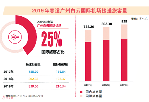 白云國際機(jī)場接送旅客量近838萬人次,其中國際旅客量近210萬人次,增長超過9%。