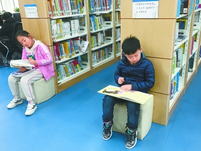在首都圖書(shū)館,大一些的孩子對(duì)自然科學(xué)類的圖書(shū)更感興趣。