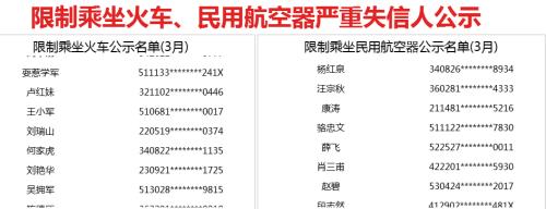 限制乘坐火車、民用航空器嚴(yán)重失信人公示。