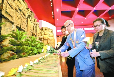 昨天,在中國人民抗日戰(zhàn)爭紀(jì)念館,老戰(zhàn)士代表、首都大中小學(xué)學(xué)生、部隊官兵等向革命先驅(qū)獻花。本報記者 饒強攝