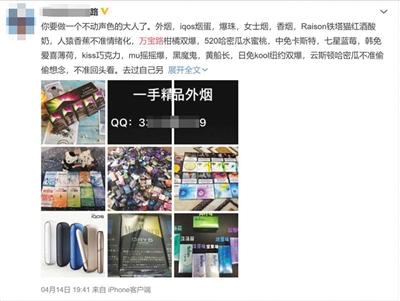 網(wǎng)上賣煙廣告,留有QQ號(hào)。 本版圖片均為微博截屏圖
