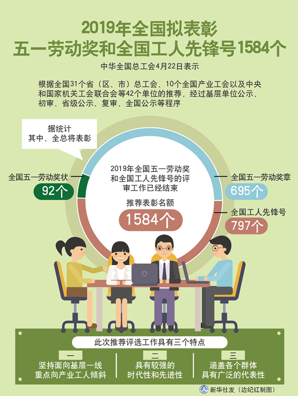 全總:2019年全國(guó)擬表彰五一勞動(dòng)獎(jiǎng)和全國(guó)工人先鋒號(hào)1584個(gè)