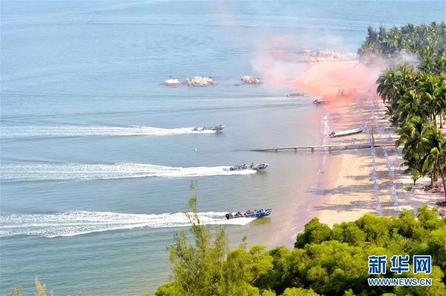 2016年9月18日,中俄“海上聯(lián)合-2016”演習(xí)舉行立體奪控島礁演練。這是陸戰(zhàn)隊員乘舟沖上灘頭。新華社發(fā)(孫宏韜 攝)