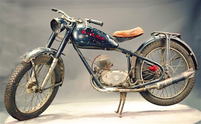 王進(jìn)喜“跑井”檢查工作時(shí)騎過(guò)的摩托車(chē)。鐵人王進(jìn)喜紀(jì)念館供圖