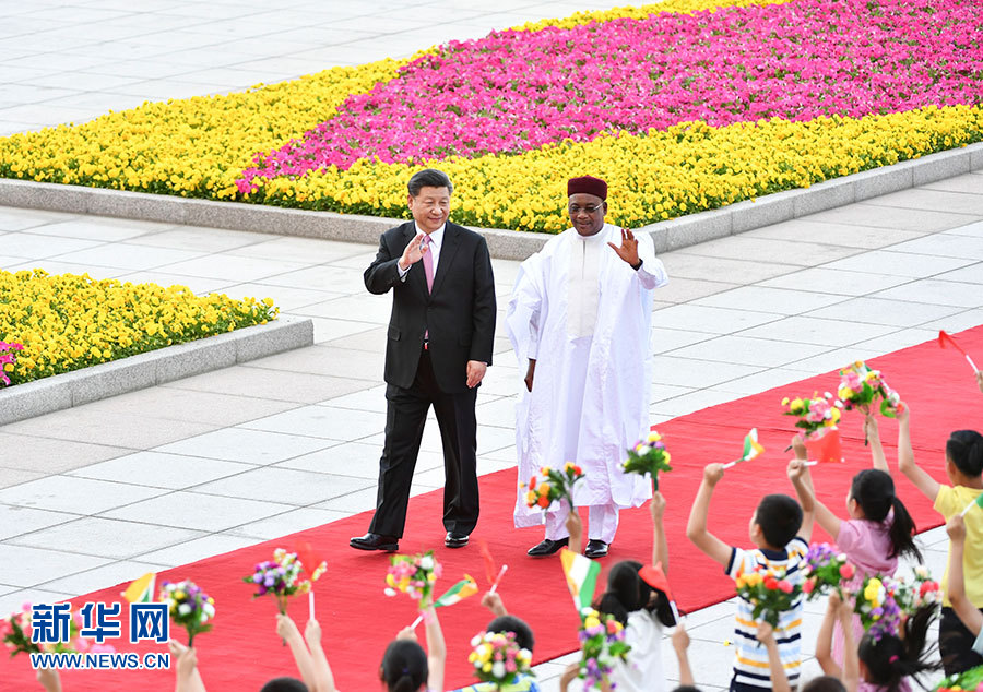5月28日,國家主席習(xí)近平在北京人民大會(huì)堂同尼日爾總統(tǒng)伊素福舉行會(huì)談。這是會(huì)談前,習(xí)近平在人民大會(huì)堂東門外廣場為伊素福舉行歡迎儀式。 新華社記者 殷博古 攝