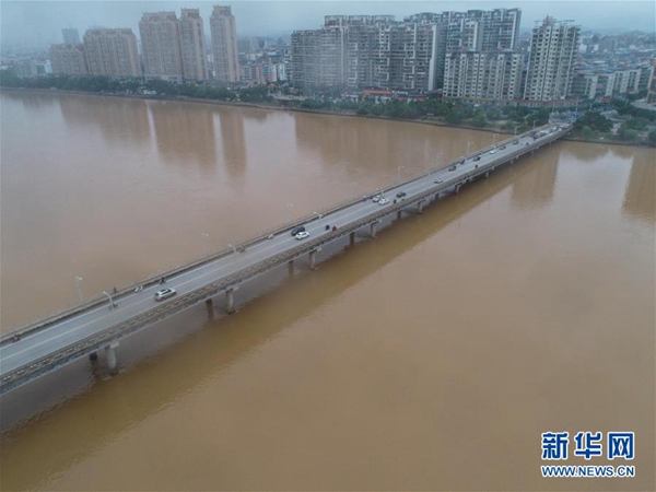 這是6月12日在江西于都拍攝的于都河畔風(fēng)光(無(wú)人機(jī)拍攝)。新華社記者 周密 攝
