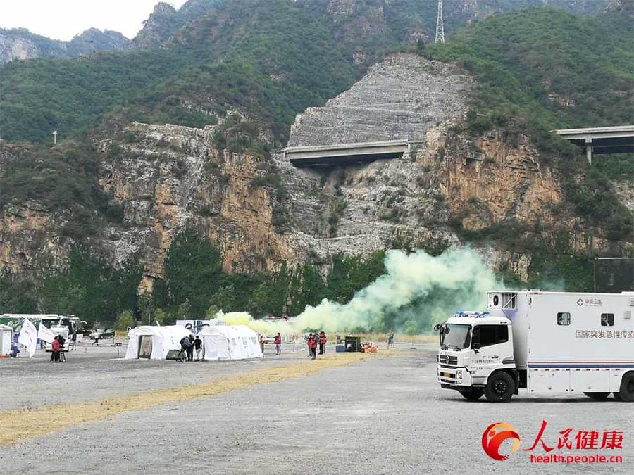 演練現(xiàn)場(chǎng)共調(diào)集緊急醫(yī)學(xué)救援、突發(fā)急性傳染病防控、突發(fā)中毒事件處置3類6支國(guó)家衛(wèi)生應(yīng)急隊(duì)伍,動(dòng)用制式衛(wèi)生應(yīng)急車輛150余臺(tái)、模塊化醫(yī)療救治帳篷40余頂、救援直升機(jī)1架,共有京津冀22家醫(yī)療衛(wèi)生單位的330余人參加了演練。