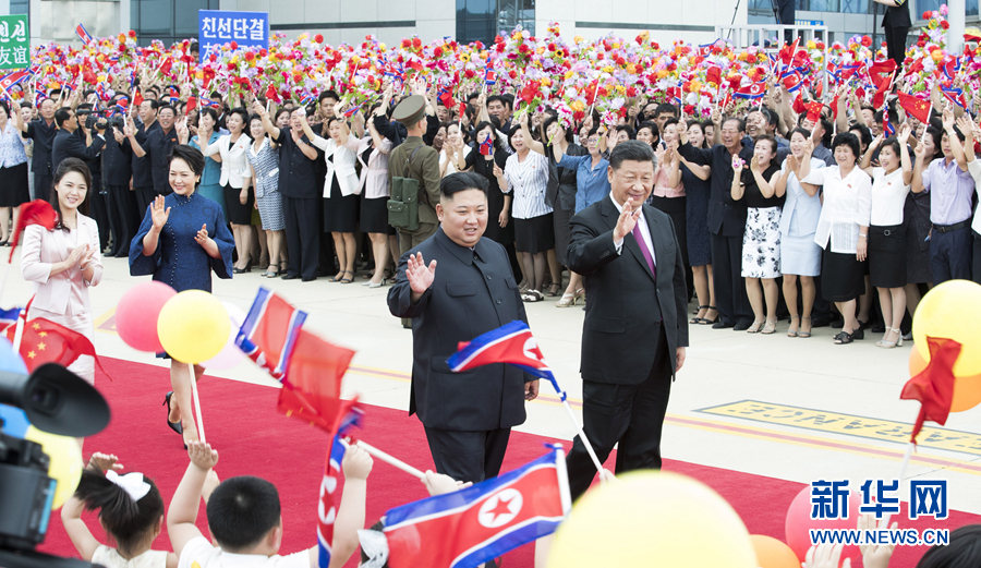 當(dāng)?shù)貢r(shí)間下午3時(shí)許,在朝鮮民眾夾道歡送中,習(xí)近平和彭麗媛抵達(dá)機(jī)場,金正恩夫婦在下車處熱情迎接。朝鮮各界群眾在機(jī)場熱烈歡送,習(xí)近平向他們揮手致意。軍樂隊(duì)奏中朝兩國國歌,習(xí)近平在金正恩陪同下檢閱了朝鮮人民軍三軍儀仗隊(duì)。朝鮮少年兒童向習(xí)近平夫婦獻(xiàn)花。習(xí)近平同朝方前來送行的高級官員一一握手告別。在專機(jī)舷梯旁,習(xí)近平同金正恩緊緊握手話別。習(xí)近平夫婦邁上舷梯,在機(jī)艙門口轉(zhuǎn)身,向金正恩夫婦揮手告別。