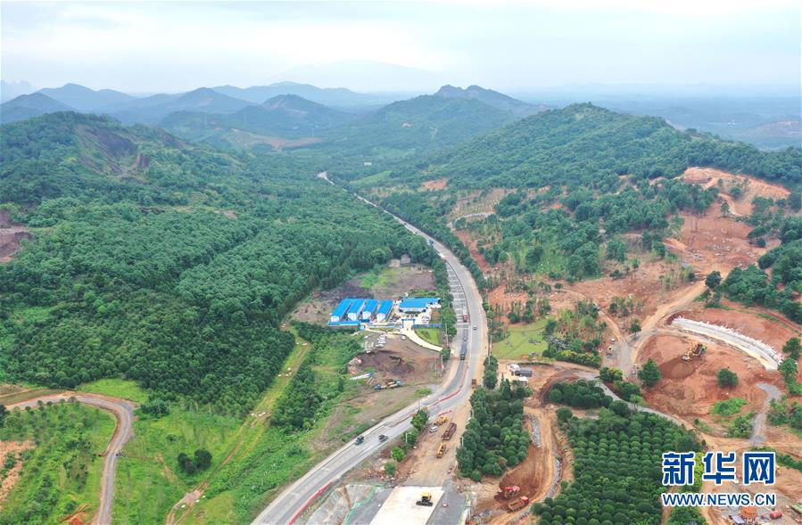 全州縣鳳凰嘴渡口正在修建的大橋(6月29日無人機(jī)拍攝)。新華社記者 周華 攝