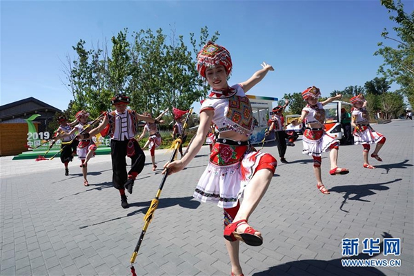7月4日,演員在“湖北日”活動上表演舞蹈。當(dāng)日,2019年中國北京世界園藝博覽會“湖北日”活動在北京世園會園區(qū)舉行。新華社記者 鞠煥宗 攝