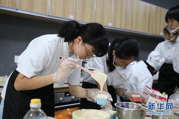 廣州市番禺區(qū)實(shí)驗中學(xué)的學(xué)生在上蛋糕烘焙課(6月3日攝)。新華社記者 李嘉樂 攝