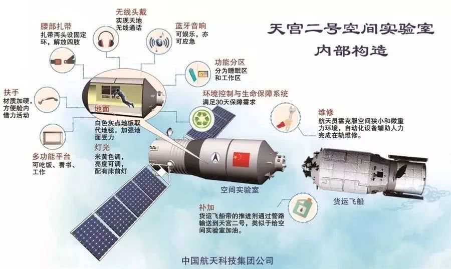 天宮二號空間實驗室內(nèi)部構(gòu)造(來源:中國航天科技集團微信公眾號)