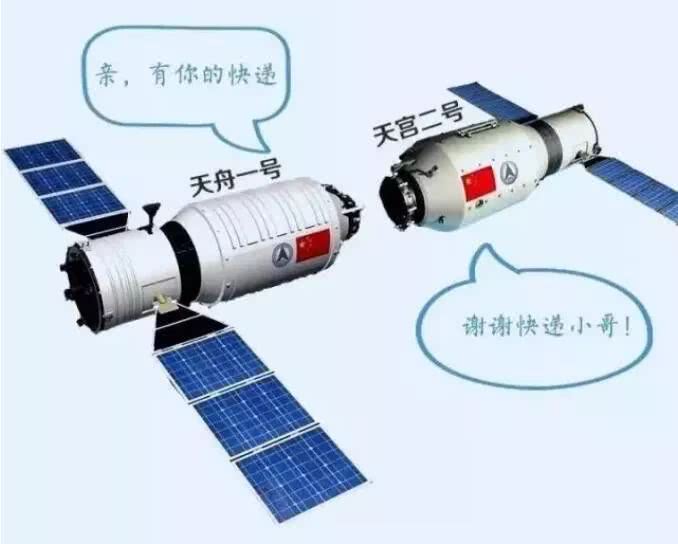 2017年4月20日,“二丫”的另一小伙伴“快遞小哥”天舟一號貨運飛船由長征七號運載火箭從海南文昌航天發(fā)射場發(fā)射升空。這位“快遞小哥”是中國的第一艘貨運飛船,全長10.6米,最大直徑3.35米,總重量有13噸,是中國目前最大、最重的航天器。