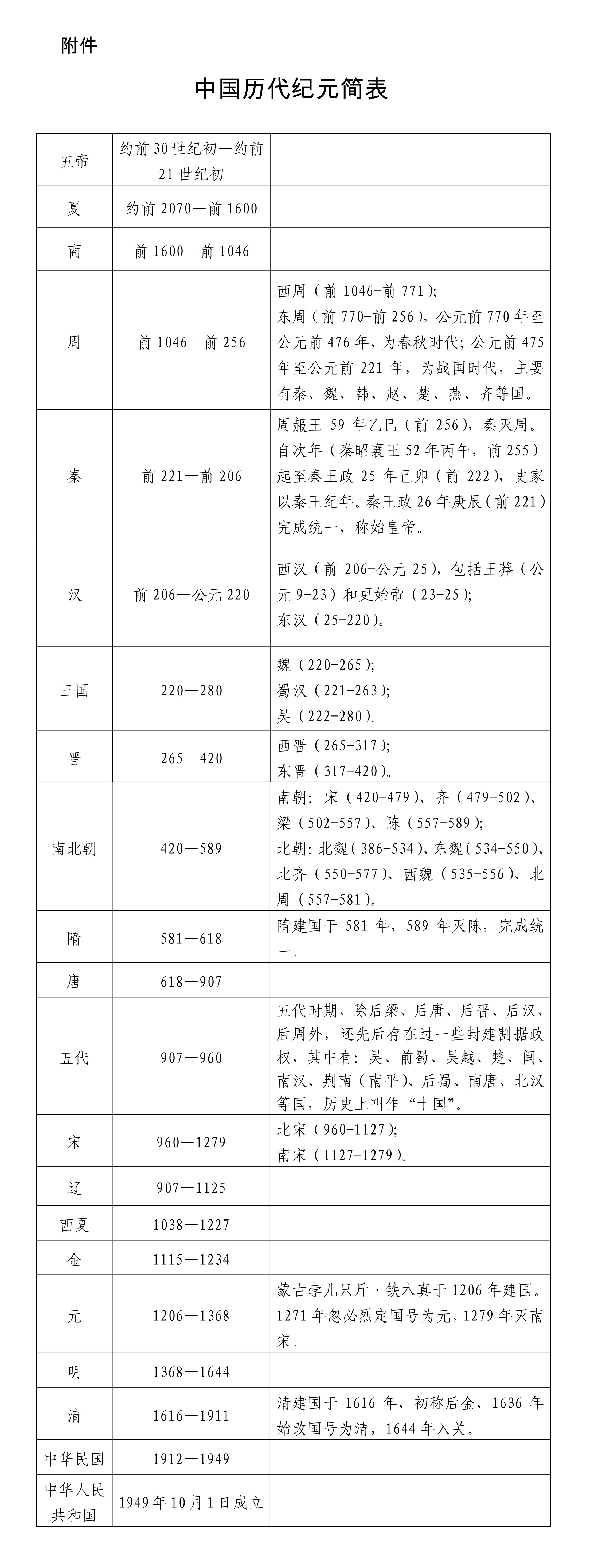 附件:中國(guó)歷代紀(jì)元簡(jiǎn)表