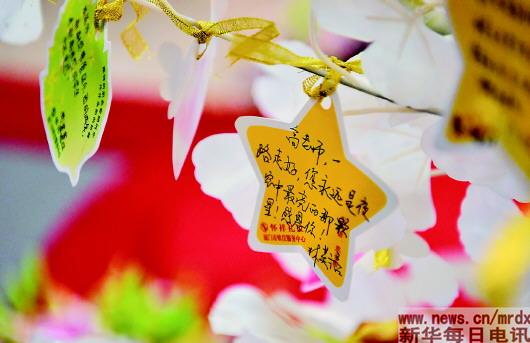 7月21日,廈門六中音樂(lè)老師高至凡曾教過(guò)的廈門六中合唱團(tuán)學(xué)生追念老師的留言。新華社記者魏培全攝