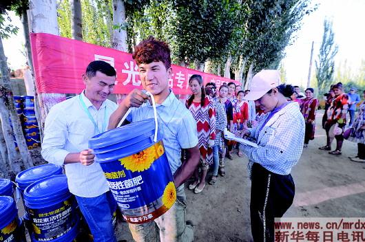 2019年7月,晨光生物免費向種植戶發(fā)放液體菊花素活性菌肥。