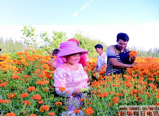 “萬壽菊是我縣的脫貧花,是促進(jìn)莎車調(diào)整農(nóng)業(yè)生產(chǎn)結(jié)構(gòu)、打贏脫貧攻堅戰(zhàn)的重要突破口,更是拉動我縣經(jīng)濟(jì)發(fā)展的新引擎?!狈f。