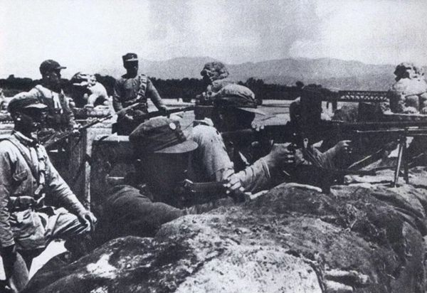 ↑1937年7月7日,駐華日軍發(fā)動“七七事變”(又稱“盧溝橋事變”),開始全面侵華。這是中國軍隊在盧溝橋抗擊日軍的進(jìn)攻。新華社發(fā)
