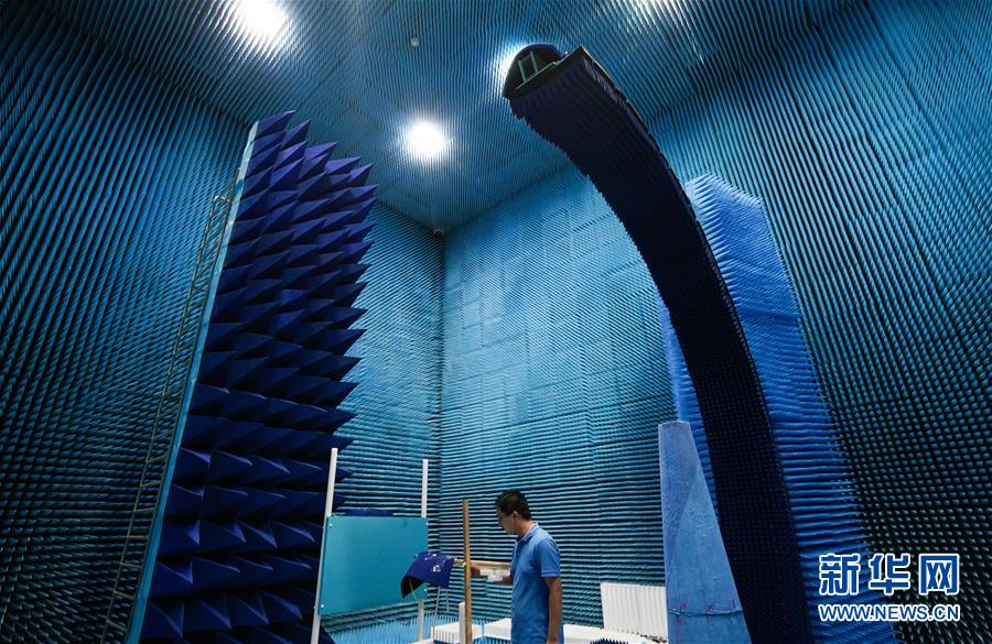 在江蘇南京江寧經(jīng)濟(jì)技術(shù)開(kāi)發(fā)區(qū),科研人員在網(wǎng)絡(luò)通信與安全紫金山實(shí)驗(yàn)室的微波暗室內(nèi)工作(6月6日攝)。新華社記者 李響 攝